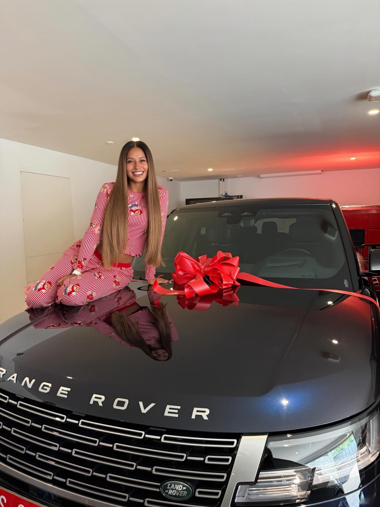 拉菲尼亚的妻子在社媒写道:现在我终于明白他为什么什么都不说了😂他叫我去车库拿东西,等我到那里时,发现是一辆车。